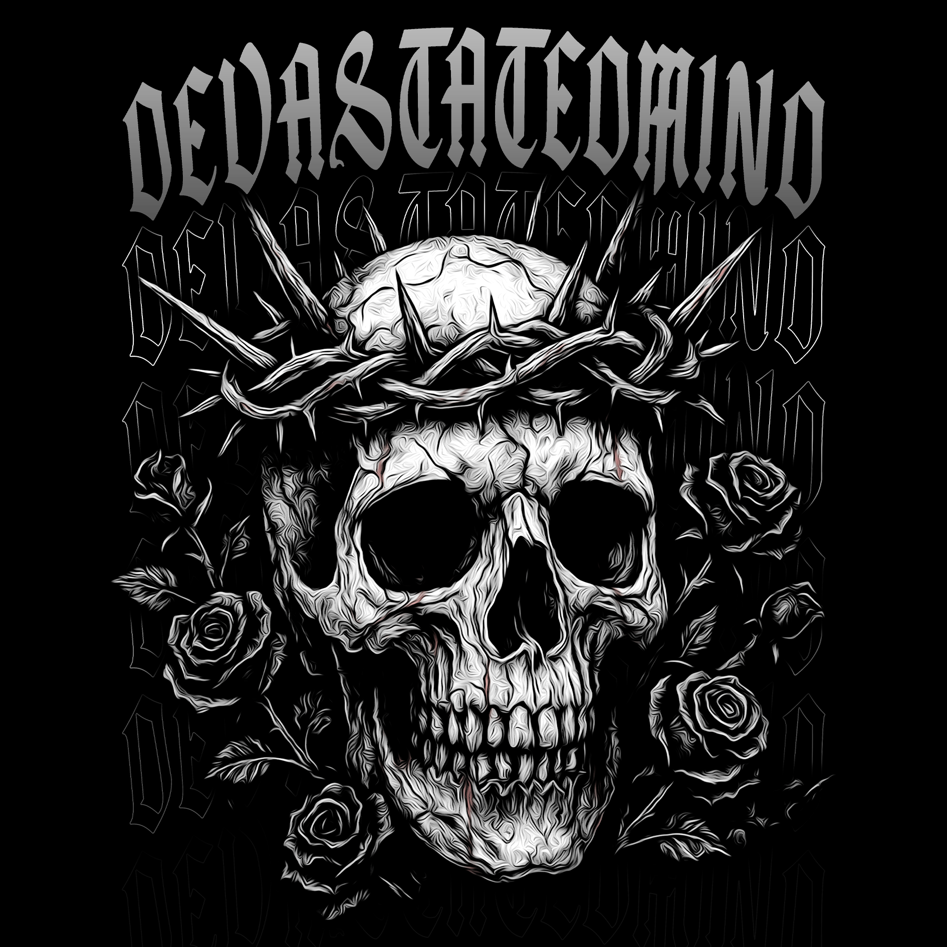 The front stares back a distorted glimpse into hollow eyes, stitched with silence and surrounded by decay. The back? A crowned skull grinning through thorns and rot, framed by roses that will never bloom. It's the funeral of conformity… and you’re walking in proud.
